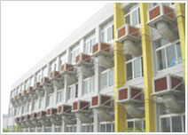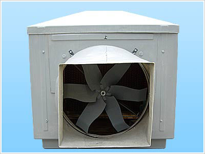 Product introduction: Wet curtain cooling fan machine is the newly developed equipment with energy saving from our company. It is simple in configuration, good in producing coolness, low in price, good in saving power, fresh in air and reliable in operation. They are widely used in industrial building, home building, public building, agricultural building for ventilation and temperature decrease. Product structure and theory: Wet curtain cooling fan machine is consisted of large-sized special paper ruffled wet curtain shaped as beehives, high efficient fan(leaf and motor),water recycling system(pump, pipeline, water separating board), floating ball valve water filling device, machine cover(box, box lid) and electrical parts. The process is like this: When the fan machine is running, a negative load will be produced inside the cavity of cooling machine, so as to make the air outside the machine enter the wet curtain surface with numerous holes and go into cavity. The water in the wet curtain will vapor in heat isolated status and take away tremendous potential heat and force the dry ball temperature through wet curtain be reduced to be close to the ball temperature outside the machine, ie dry ball temperature in air outlet is 5-12℃lower than dry ball temperature outdoor(dry heat area is reaching15℃). If the air is drier, the temperature difference is larger. The cool air will be sent into the indoor from wind outlet and be combined with heat air in door, and be expelled to outdoor through wall hole, window or door, so indoor temperature is reduced. As the air is always introduced from outdoor to indoor, the indoor air is always fresh. As this machine is used with evaporation and temperature decrease theory, two functions of temperature decrease and humidity increase (relevant temperature is about 75%) are achieved. They are widely used in textile and knitting workshop which will improve conditions for temperature decrease and reduce the rate of thread broking in textile manufacturing process so as to improve textile product quality.